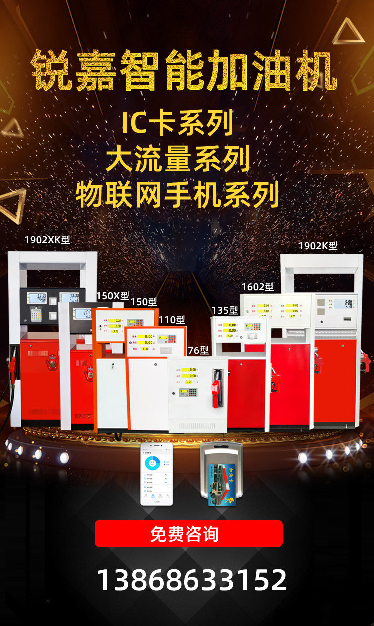 銳嘉新型雙槍加油機(jī)IC卡加油機(jī)1902XK型是一款加油站防爆汽油插卡加油機(jī),可加柴油和汽油,750W大功率,流量每分鐘可達(dá)60L-100L,加油機(jī)內(nèi)部采用軟活塞流量計(jì)和防爆組合泵裝置,安全更放心!